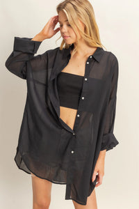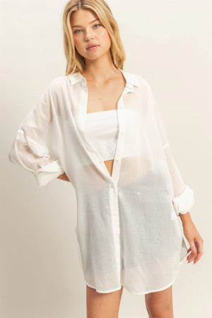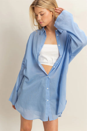 Put Together A Laid-Back Outfit In An Instant With This Tunic Shirt. Soft Cotton Voile Fabric Shapes This Shirt That Has A Collared Design With Long Sleeves. The Button Front Placket Leads To An Oversized Fit.