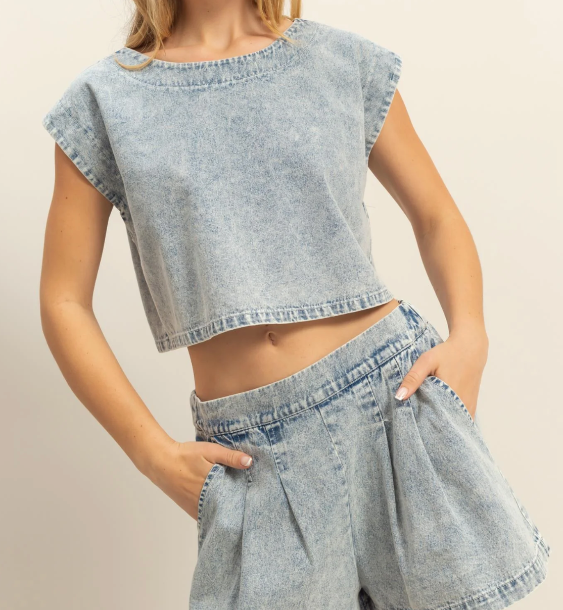Create An Effortlessly Cute Look With This Set. The Top Comes With A Round Neckline, Short Sleeves And A Wide Cut Crop Bodice. The Matching Shorts Have Pleated Detail And Flowy Legs. The Shorts Also Feature Side Pocket Detail.100% Cotton