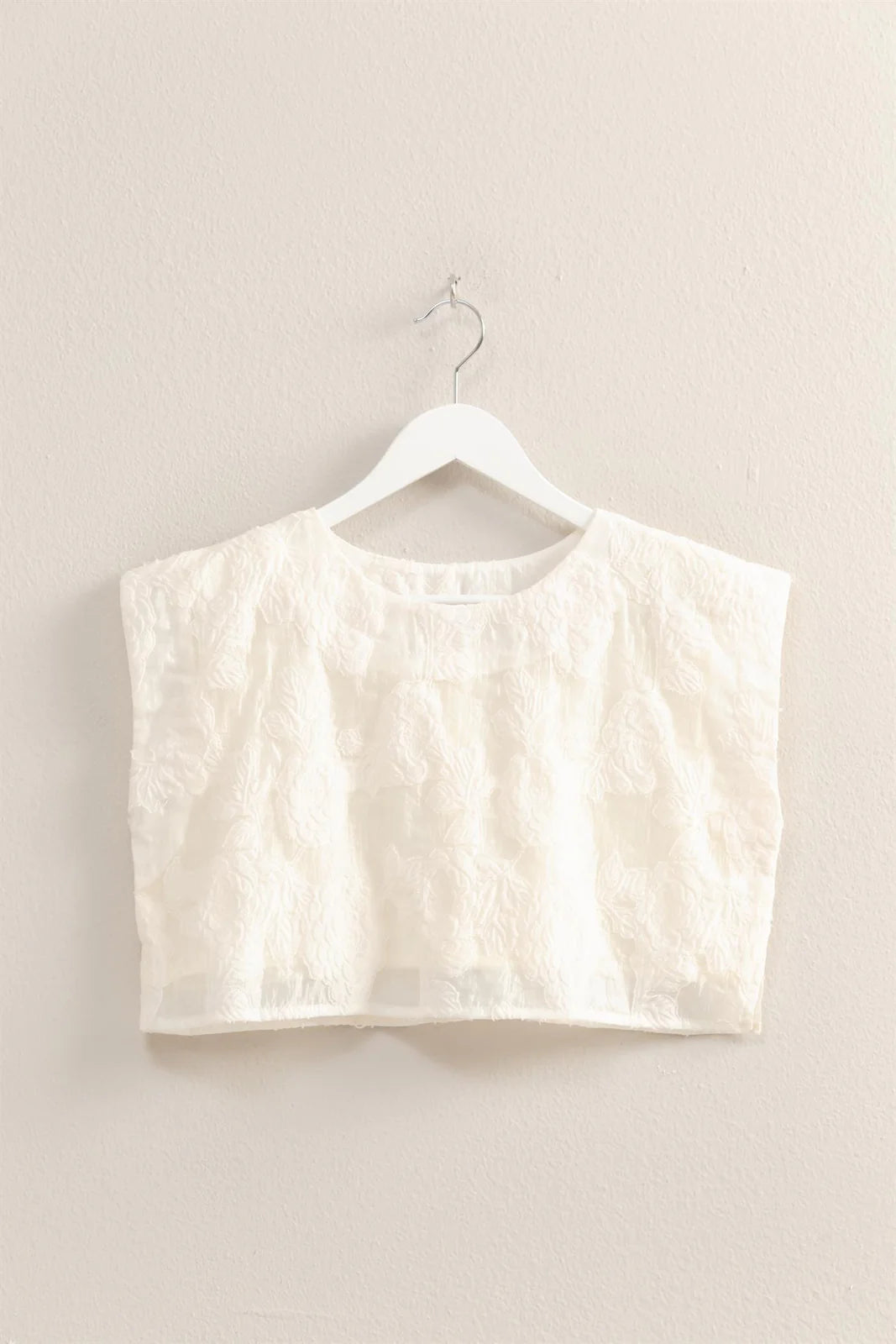 Your Basic Fits Deserve Something Like This Top. Featuring A Floral Jacquard Pattern All Over, The Top Has A Crew Neckline With Short Sleeves. The Relaxed Bodice Falls To A Trendy Crop Hem, So Pair With Your Favourite High-Waist Bottoms.